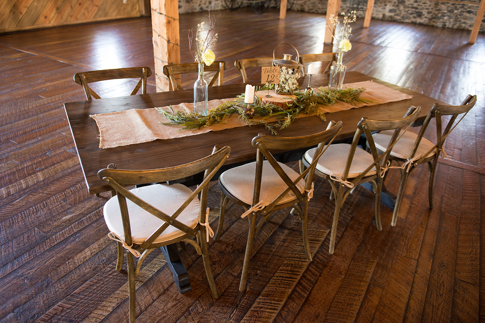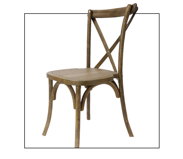 Crafted of solid wood and elegantly distressed with a weathered finish, these cross-back chairs pair perfectly with our farm tables.